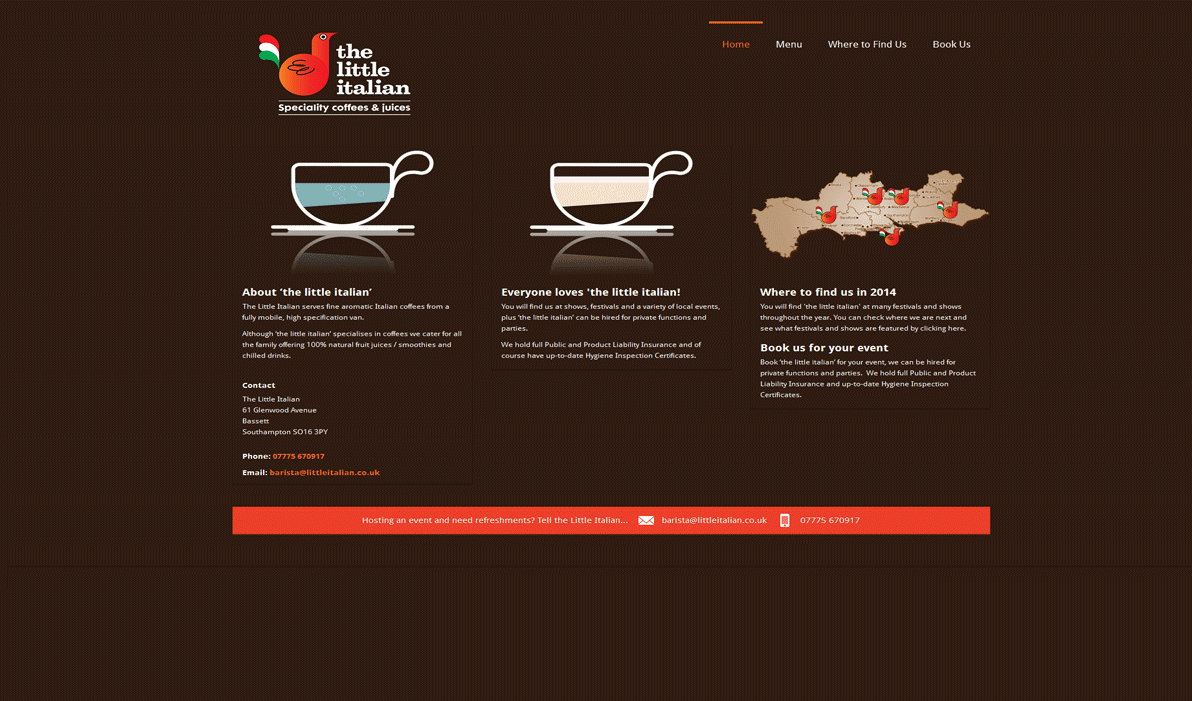 The brief was to come up with a ‘brand’ a logo initially that would be memorable, stir interest, have a bit of fun to it. Once a logo was decided on a small but device responsive website to support future marketing and gradually become a reference point for where ‘The Little Italian’ would be next.