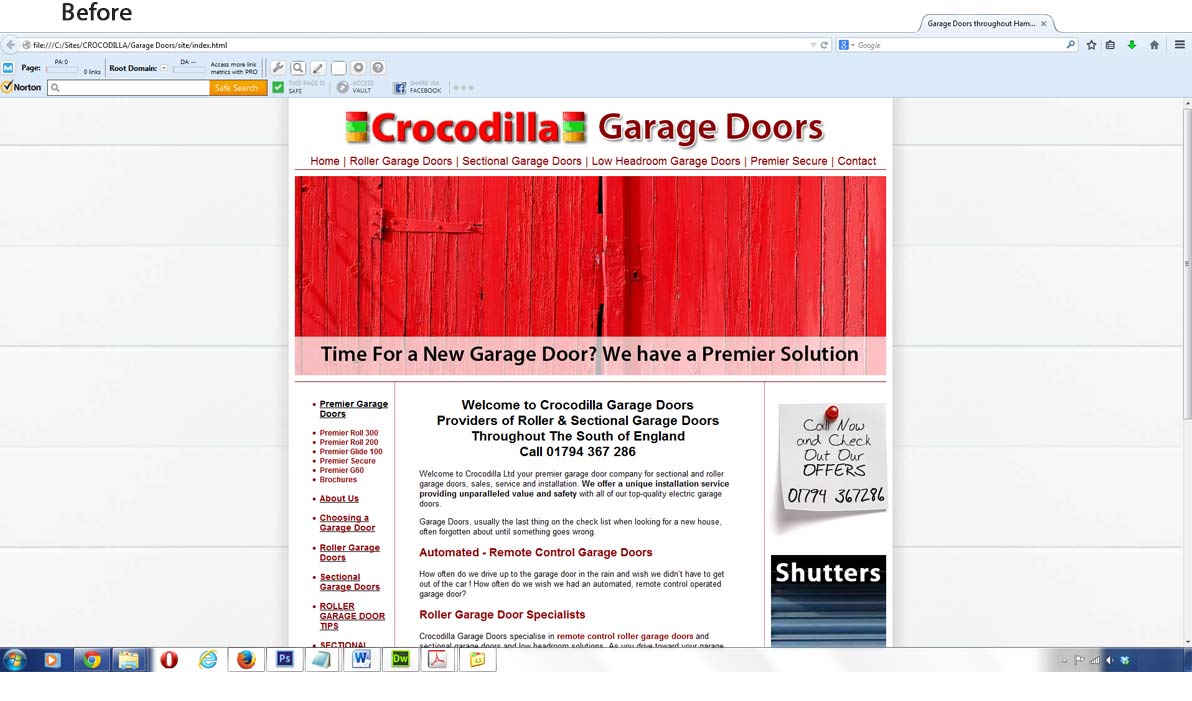 The brief was to redesign and make responsive across devices the companies garage door website. We had designed the original site a few years ago and the client knowing the value of first impressions wanted to look the best across devices especially smartphones. We used Bootstrap framework and reworked the imagery from the existing site along with imagery from the manufacturers to bring the site alive. The original sites open clean design was improved on and the same would go on to be used for the second site of this multi-site project. This site would be cira 30 pages the second a minimum of 300.