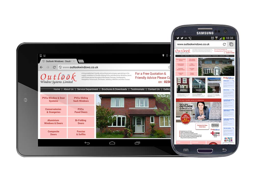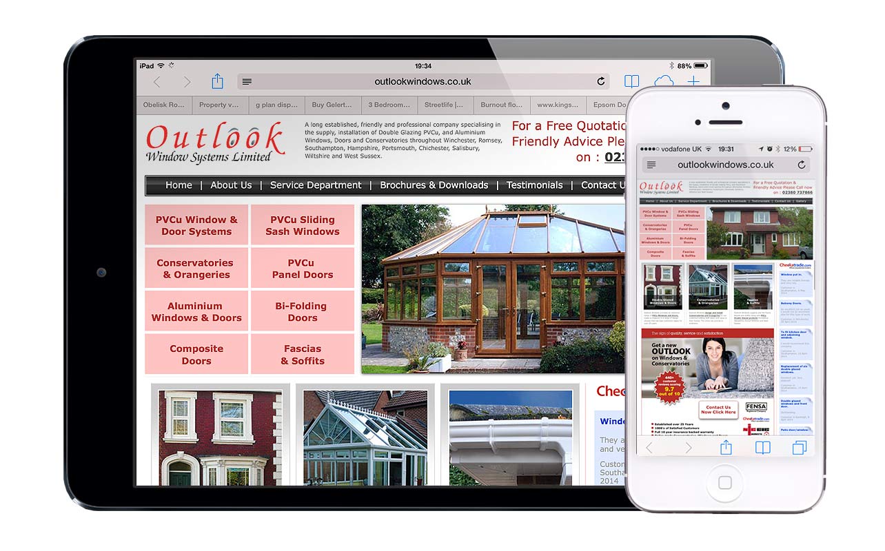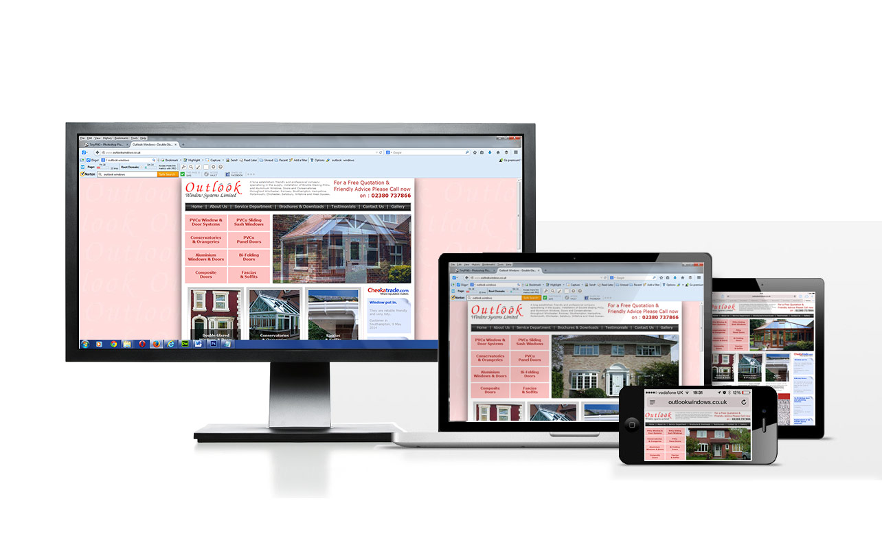 Outlook Windows of Romsey new pretty much what they wanted in their redesign but there was no existing website to gather content from. They provided a fairly clear brief and pointed out competitive sites they wanted me to take note of. Using their existing brand and the many images of their work, their recommendations on Check a Trade and a little research we put together a site to their liking although they opted not to go for a device sensitive website at the time. The device images show the site appearing acceptable in tablets but very small in smartphones.