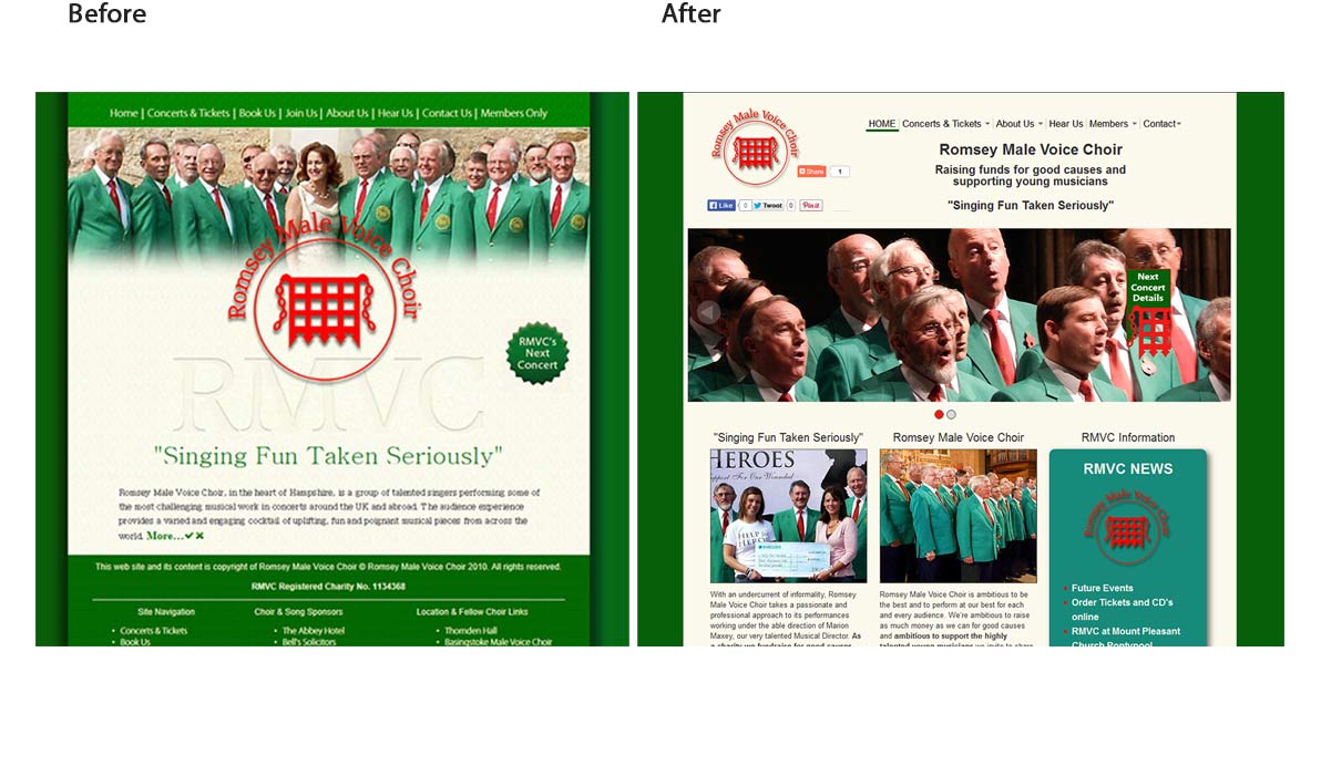 After designing, hosting and updating the Romsey Male Voice Choir’s first website, the time came for them to redesign the site. A responsive site was the order of the day with redesigned and reworked pages updating the look and content in general and making provision for ongoing SEO additions.